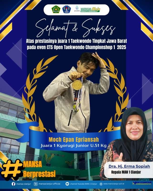 MOCH EPAN EPRIANSYAH, SISWA MAN 1 CIANJUR RAIH JUARA 1 TAEKWONDO TINGKAT JAWA BARAT