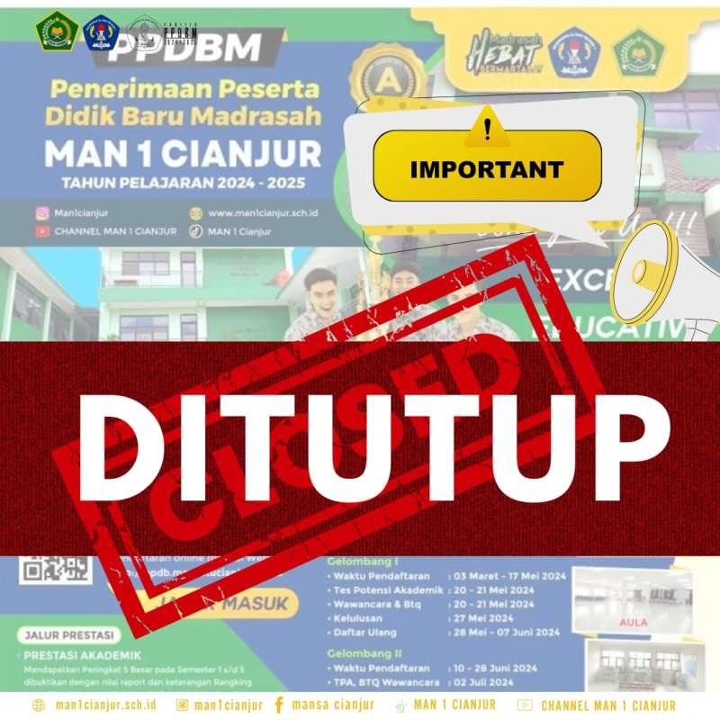 Panitia PPDB MAN 1 Cianjur akhirnya melakukan penutupan pendaftaran pada