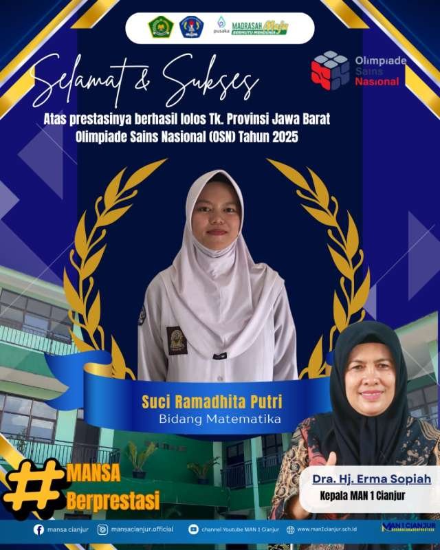 membanggakan datang dari MAN 1 Cianjur. Salah satu siswi terbaiknya, Suci